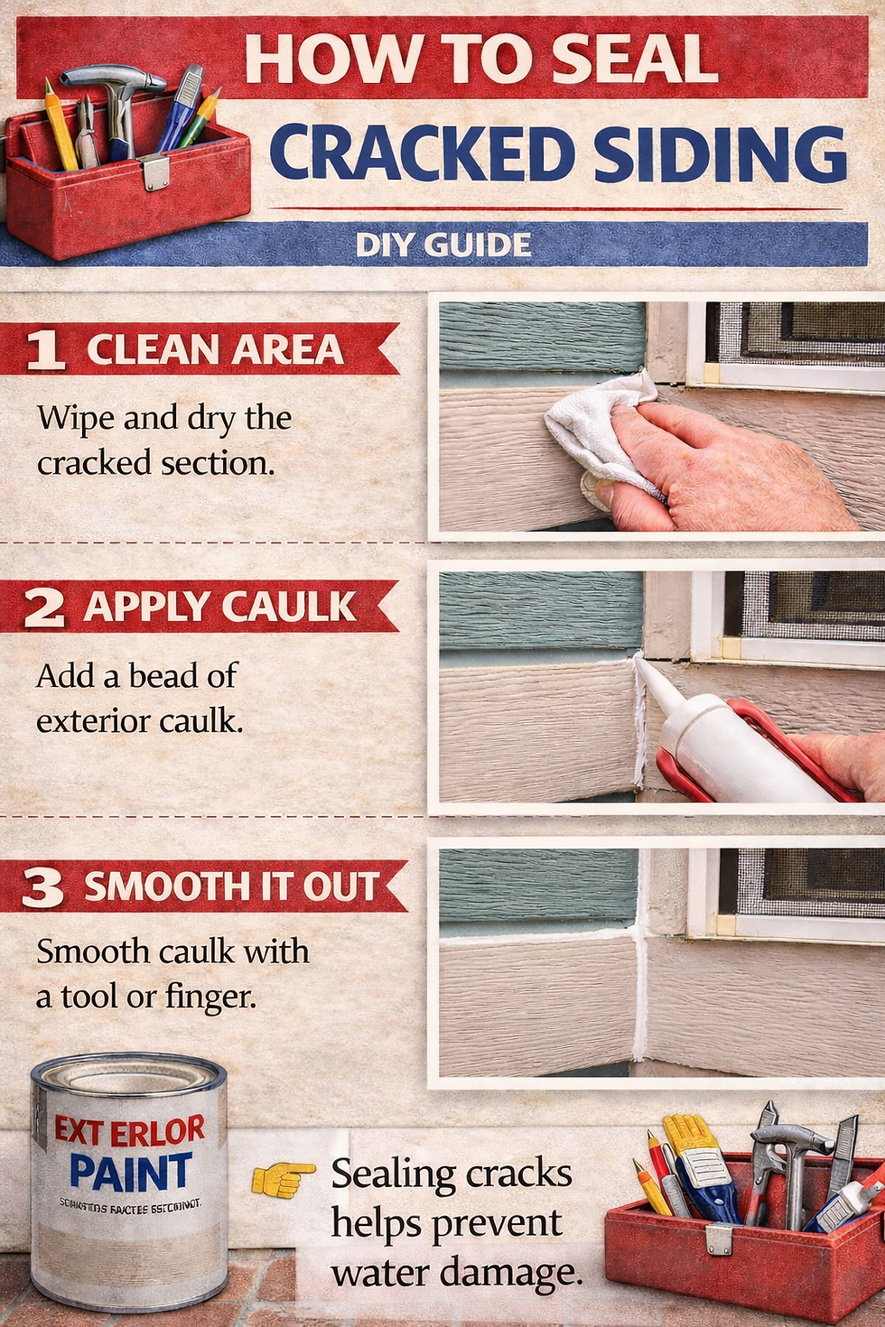 Start by cleaning the area thoroughly—wipe away dirt, debris, and any loose paint so the surface is dry and ready to bond. Next, apply a steady bead of high-quality exterior caulk directly into the crack, making sure it fully fills the gap. Finally, smooth the caulk using your finger or a finishing tool to create a tight seal and clean appearance. Taking a few minutes to fix small cracks like this can prevent moisture intrusion, wood rot, and much more expensive repairs down the road.